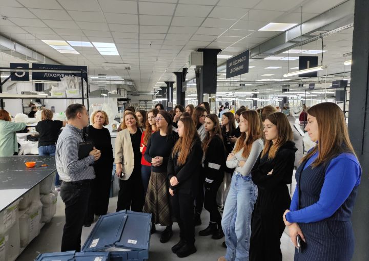 Сучасне виробництво: Відділи декорування, пошиття та конструювання. Студенти на власні очі побачили, як створюються шедеври — від ескізу до готового виробу.